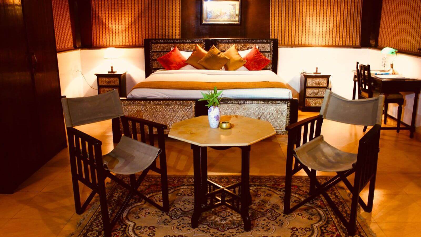 Our Villa Rooms, the most spacious offerings in Infinity Resorts, feature rich Rajasthani handmade furnishings and offer direct views into the core zone of Bandhavgarh National Park. Do note, wild animals may roam our resort during the night hours.